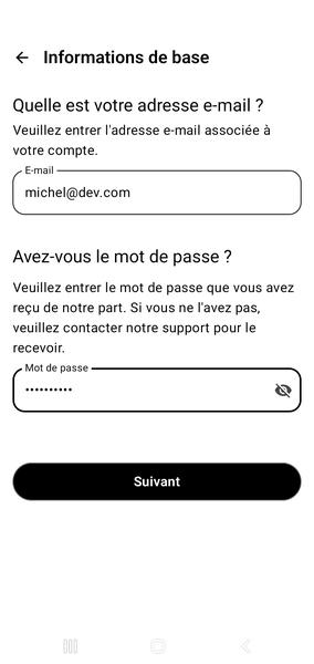 Au début de la phase de configuration, des identifiants vous seront demandés, car l’application nécessite un compte sur le serveur où se trouve le système de configuration du téléphone. Avant d’installer, il faut donc avoir obtenu ces identifiants.
