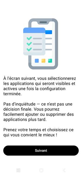 L’application est maintenant installée, et la page d’accueil va s’afficher avec les applications que vous avez sélectionnées. Elle est installée en mode découverte, ce qui veut dire qu’il est possible de la désinstaller avec le mot de passe administrateur. Les fonctionnalités sont complètes, mais ce mode n’est pas aussi solide que le mode enrôlé.
