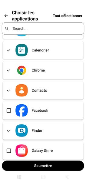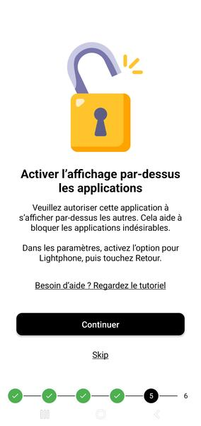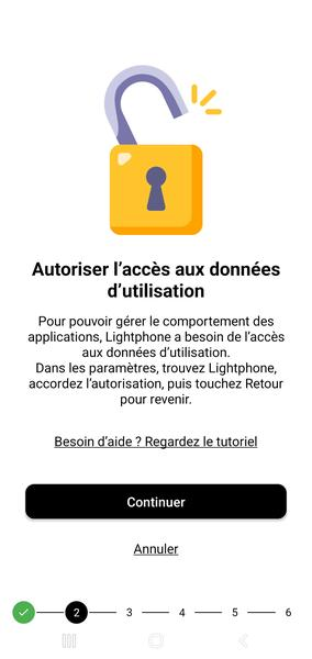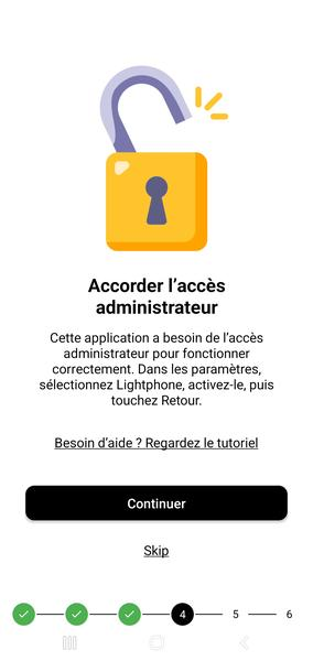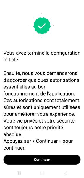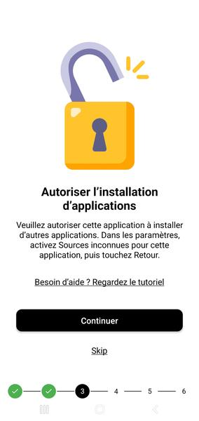 Aux étapes suivantes, il est possible de sauter une permission. Cependant le fonctionnement de l’application en sera affecté.