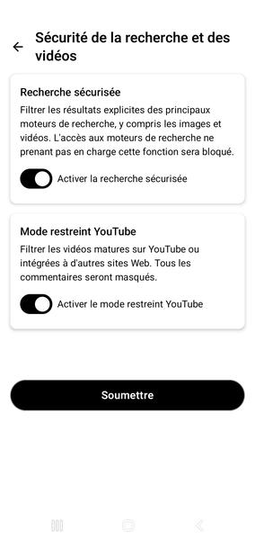 Sélectionnez les filtres qui seront actifs dans les moteurs de recherche et dans Youtube