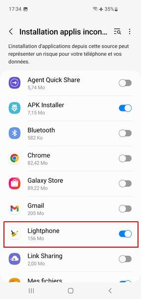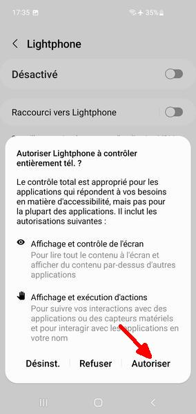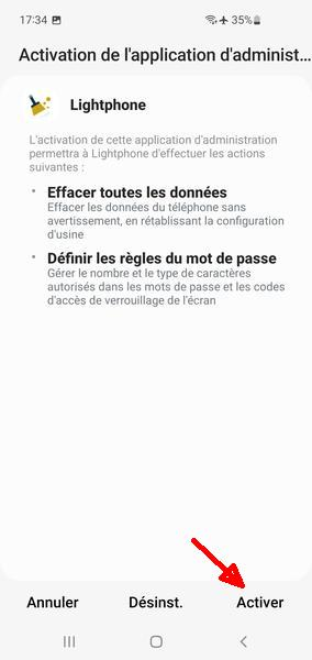 C’est pourquoi une fois que vous serez certain que Lightphone correspond bien à vos besoins, il est conseillé d’enrôler le téléphone. Voir pour cela le guide spécifique, car cette opération nécessite un programme externe.