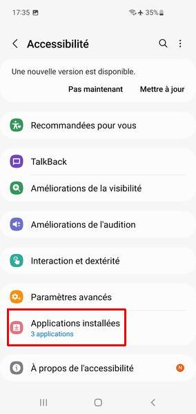 Ouvrez la liste des applications qui peuvent utiliser les fonctions d’accessibilité