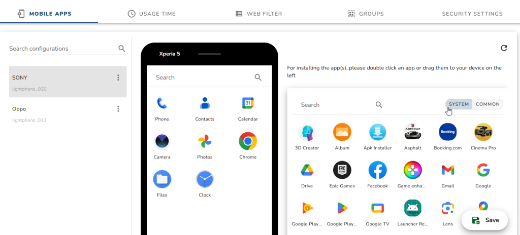 Application mobiles qui permet de sélectionner les applications qui seront accessibles sur le téléphone