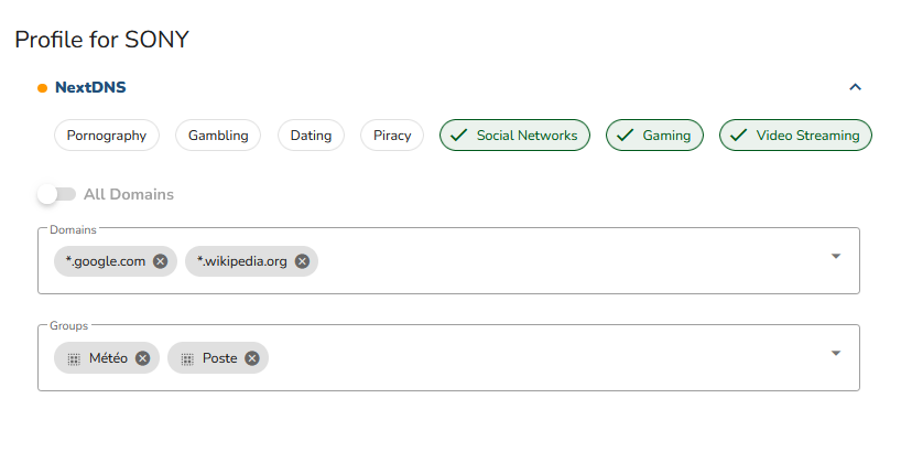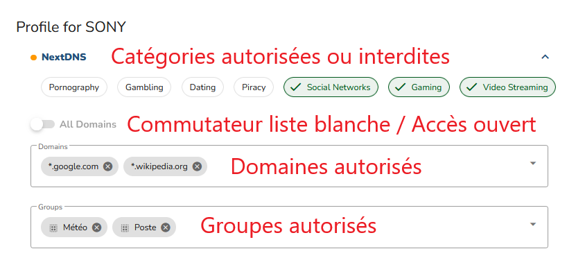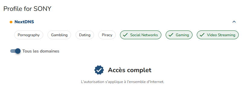Le filtrage est réalisé par NextDNS et demande un abonnement.
