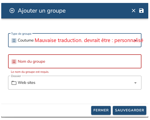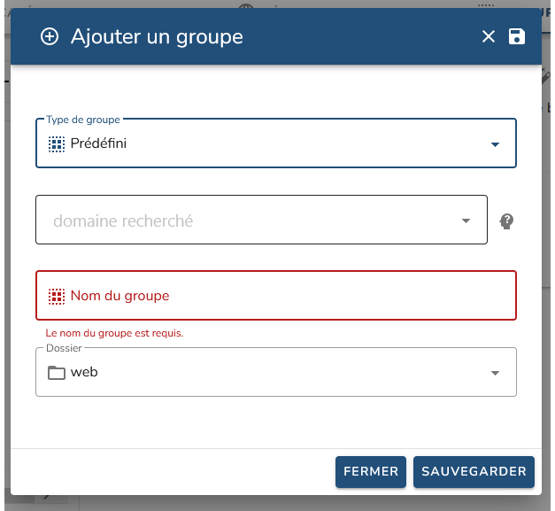 Quand on ajoute un groupe, l’interface suivante s’ouvre :