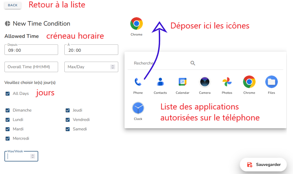 S’ils sont les seuls définis, cela voudra dire que l’application (ou le groupe d’applications) est autorisée de 9h00 à 20h00.